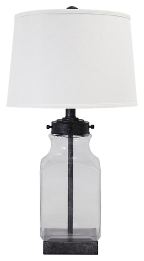 | Details | Lamp base made of smoky glass and antiqued silvertone metal, Fabric modified drum shade, 3-way switch for task lighting, 1 type A bulb (not included); 150 watts max or CFL 25 watts max; UL Listed, Ideal complement to modern farmhouse and vintage-inspired decor, Clean with a soft, dry cloth, Assembly required | |