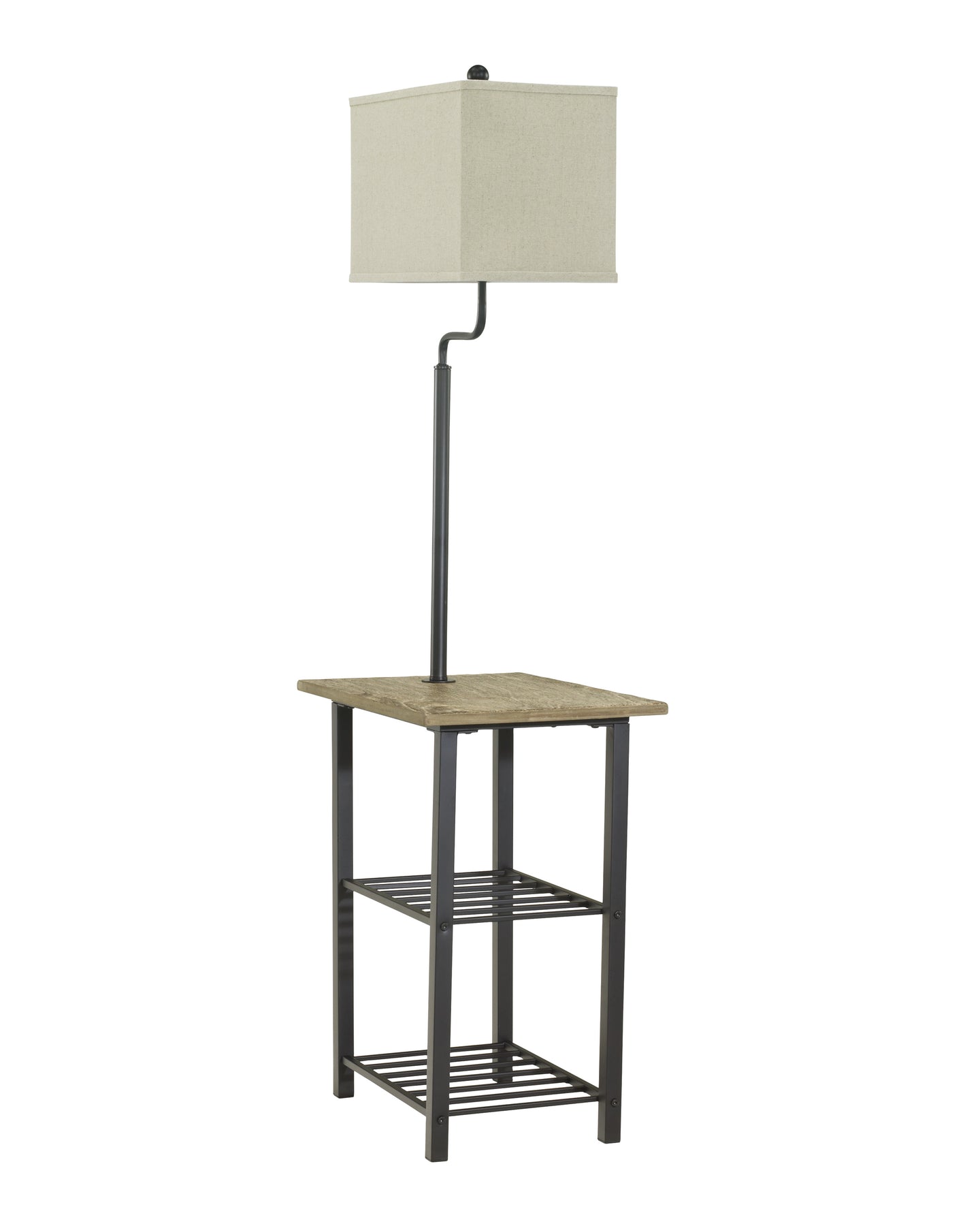 This metal tray lamp seamlessly integrates tabletop and dual rack space with an overhead lamp, putting multifunctional furnishings in a new light. What an especially bright idea when you’re tight on space.
