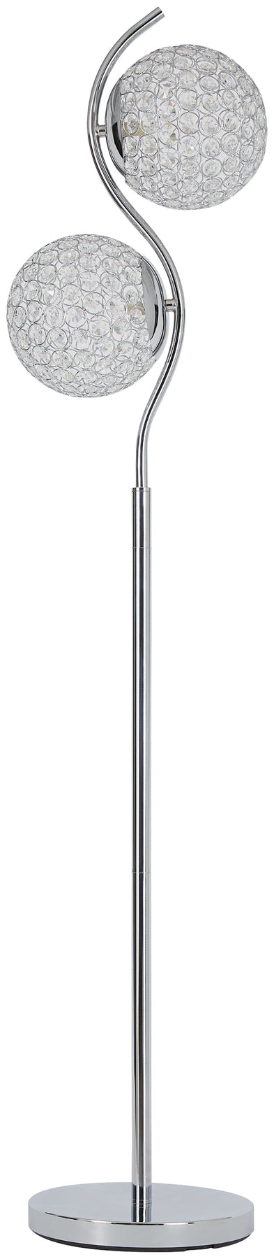 This uniquely striking floor lamp showcases the beauty of transparency. A high-gloss chrome-tone candlestick base is enriched with 2 acrylic bead and metal dome shades giving clean, classic elements a chic upgrade.