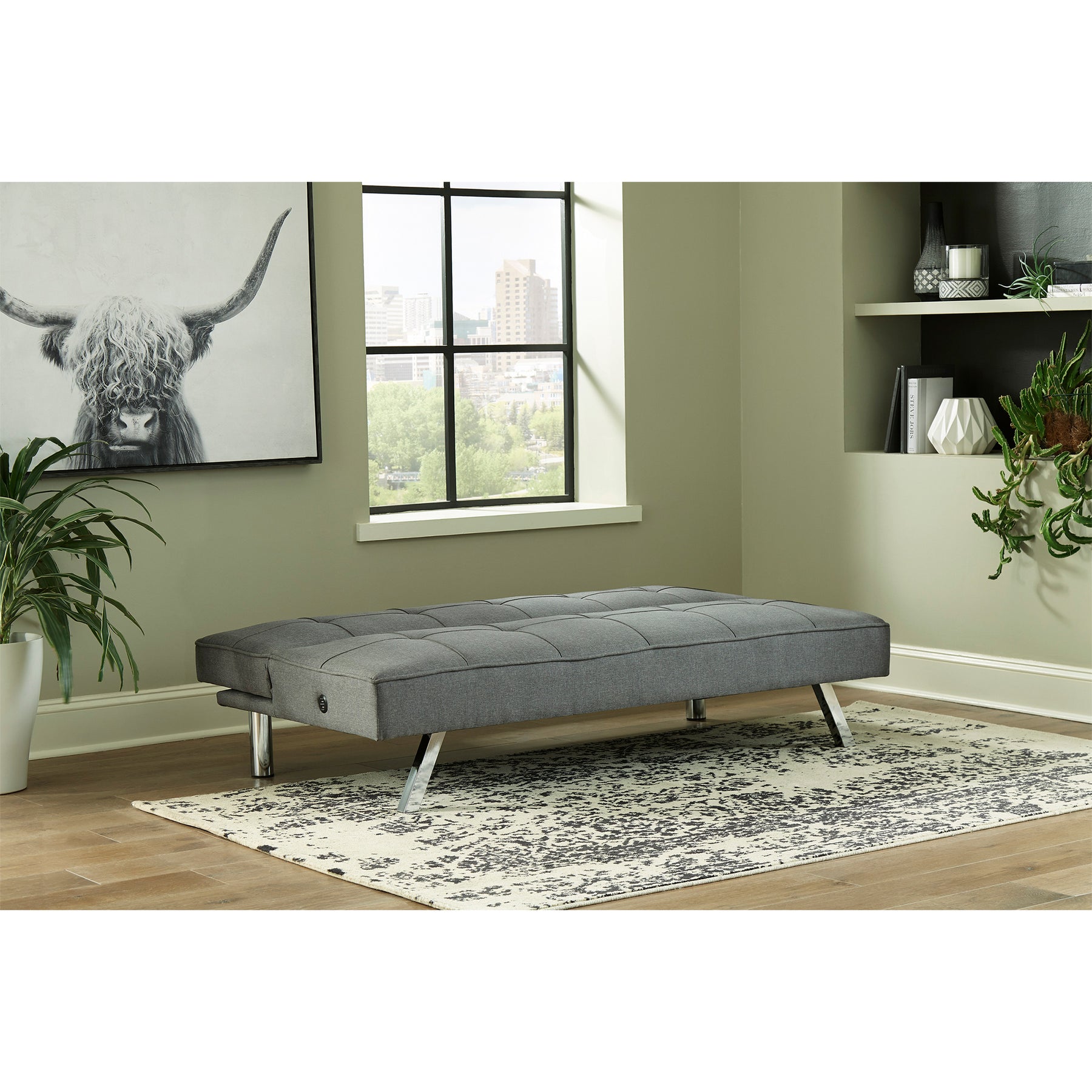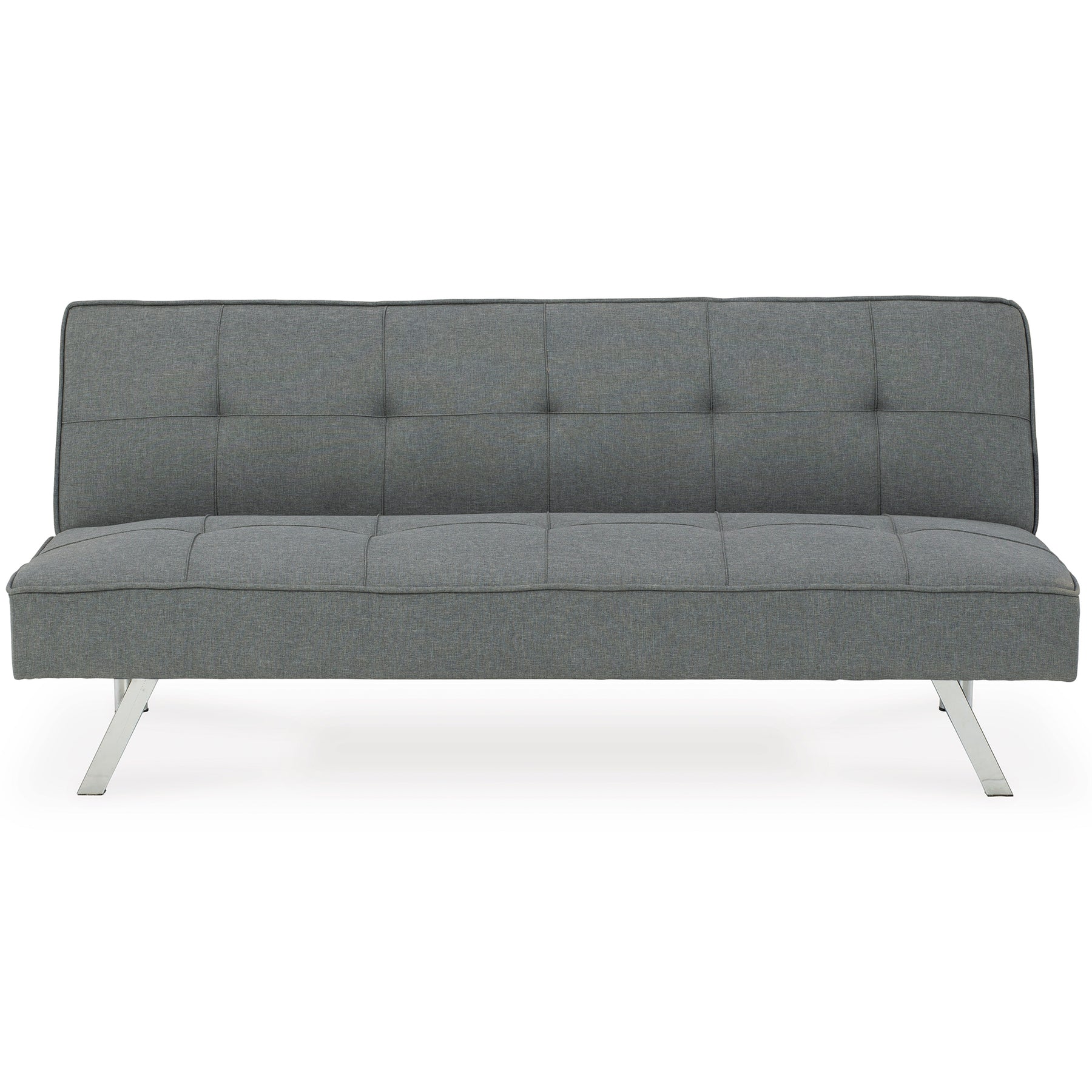 If you’re short on space and long for contemporary style, you’re sure to flip for this flip flop armless sofa. Ideal for apartments and home office/guest room shared spaces, this ultra-contemporary option easily converts from a sofa into a “futon” to accommodate overnight guests. Canted chrome-tone metal legs and box tufting work wonders if modern moves you.