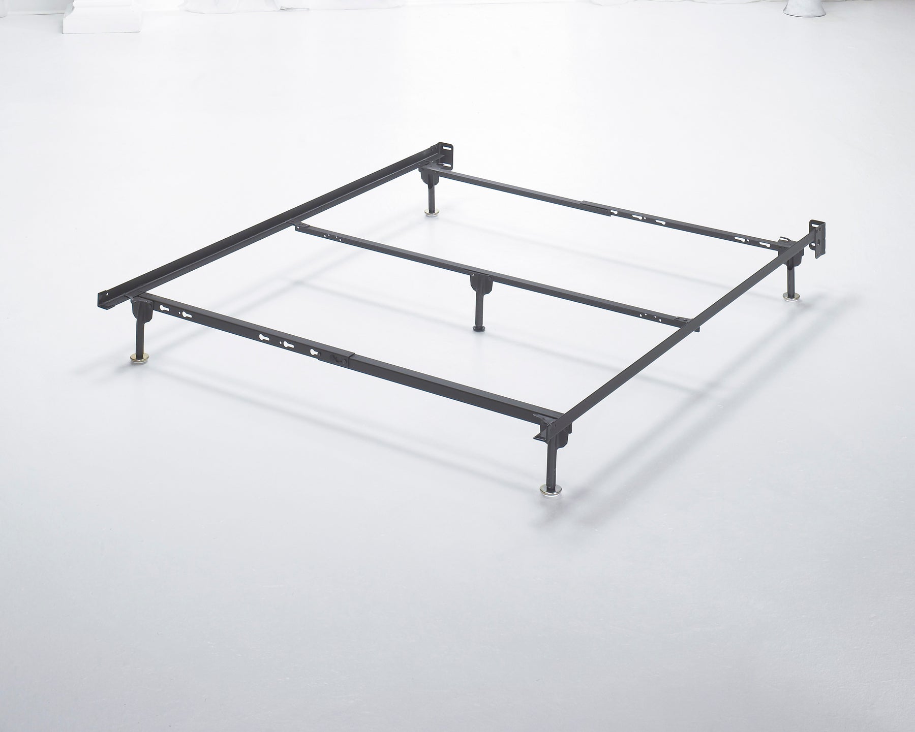 Sturdy metal bed frame supports king/queen/full/twin mattresses and box springs. Bolts connect frame to most headboards.