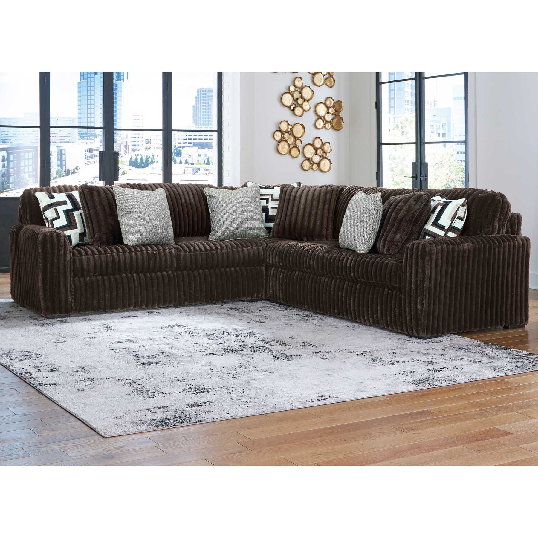 | Details | Includes 3 pieces: left-arm facing sofa, wedge and right-arm facing sofa , "Left-arm" and "right-arm" describe the position of the arm when you face the piece, Corner-blocked frame, Attached back and reversible seat cushions, High-resiliency foam cushions wrapped in thick poly fiber, Accent pillows included, Pillows with soft polyfill, Polyester upholstery, Low-profile accent legs with faux wood finish, Platform foundation system resists sagging 3x better than spring system after 20,000 testing cycles by providing more even support, Smooth platform foundation maintains tight, wrinkle-free look without dips or sags that can occur over time with sinuous spring foundations | |