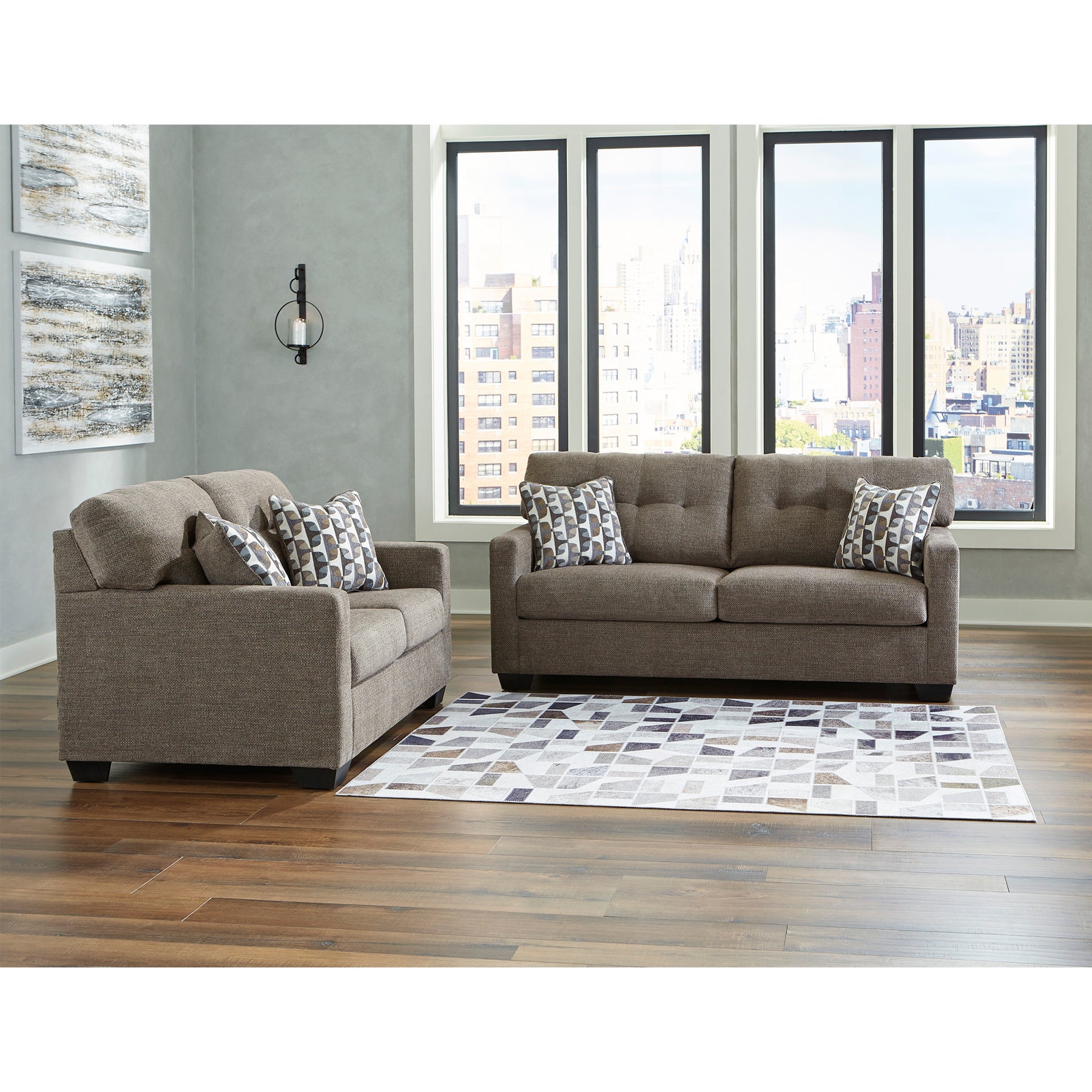 Luxurious chocolate-colored Mahoney Sofa and Loveseat, ideal for comfortable and stylish home interiors