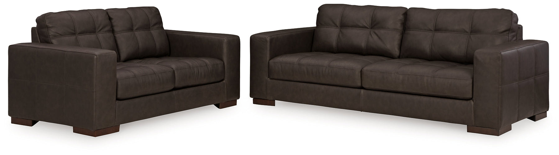 | Details | 5650638: Corner-blocked frame, Attached back and loose seat cushions, High-quality foam cushions wrapped in poly fiber, 100% top grain leather covers inside areas such as the back, seat and arm cushions; skillfully matched faux leather covers the remaining areas, Lightly buffed and embossed for a more natural look, Due to its natural origin, real leather can show individual characteristics such as healed scars, growth marks, grain variation and shade variation, Natural variations make each hide unique and do not detract from the wearing qualities of leather, Exposed feet with faux wood finish, Platform foundation system resists sagging 3x better than spring system after 20,000 testing cycles by providing more even support, Smooth platform foundation maintains tight, wrinkle-free look without dips or sags that can occur over time with sinuous spring foundations, 5650635: Corner-blocked frame, Attached back and loose seat cushions, High-quality foam cushions wrapped in poly fiber, 100% top grain leather covers inside areas such as the back, seat and arm cushions; skillfully matched faux leather covers the remaining areas, Lightly buffed and embossed for a more natural look, Due to its natural origin, real leather can show individual characteristics such as healed scars, growth marks, grain variation and shade variation, Natural variations make each hide unique and do not detract from the wearing qualities of leather, Exposed feet with faux wood finish, Platform foundation system resists sagging 3x better than spring system after 20,000 testing cycles by providing more even support, Smooth platform foundation maintains tight, wrinkle-free look without dips or sags that can occur over time with sinuous spring foundations, | |