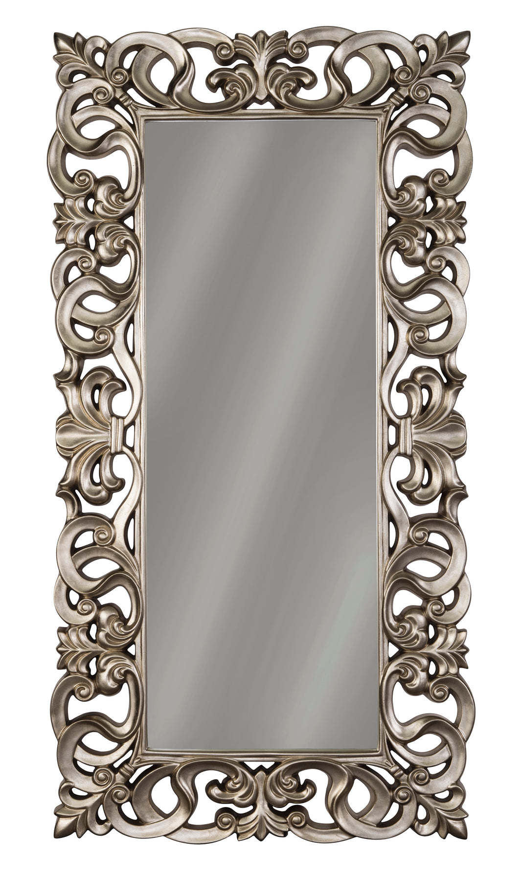 Exquisitely crafted for any glamour queen, this floor mirror is a splendid accent. Antique silver finish brings life to the ornate scroll design.
