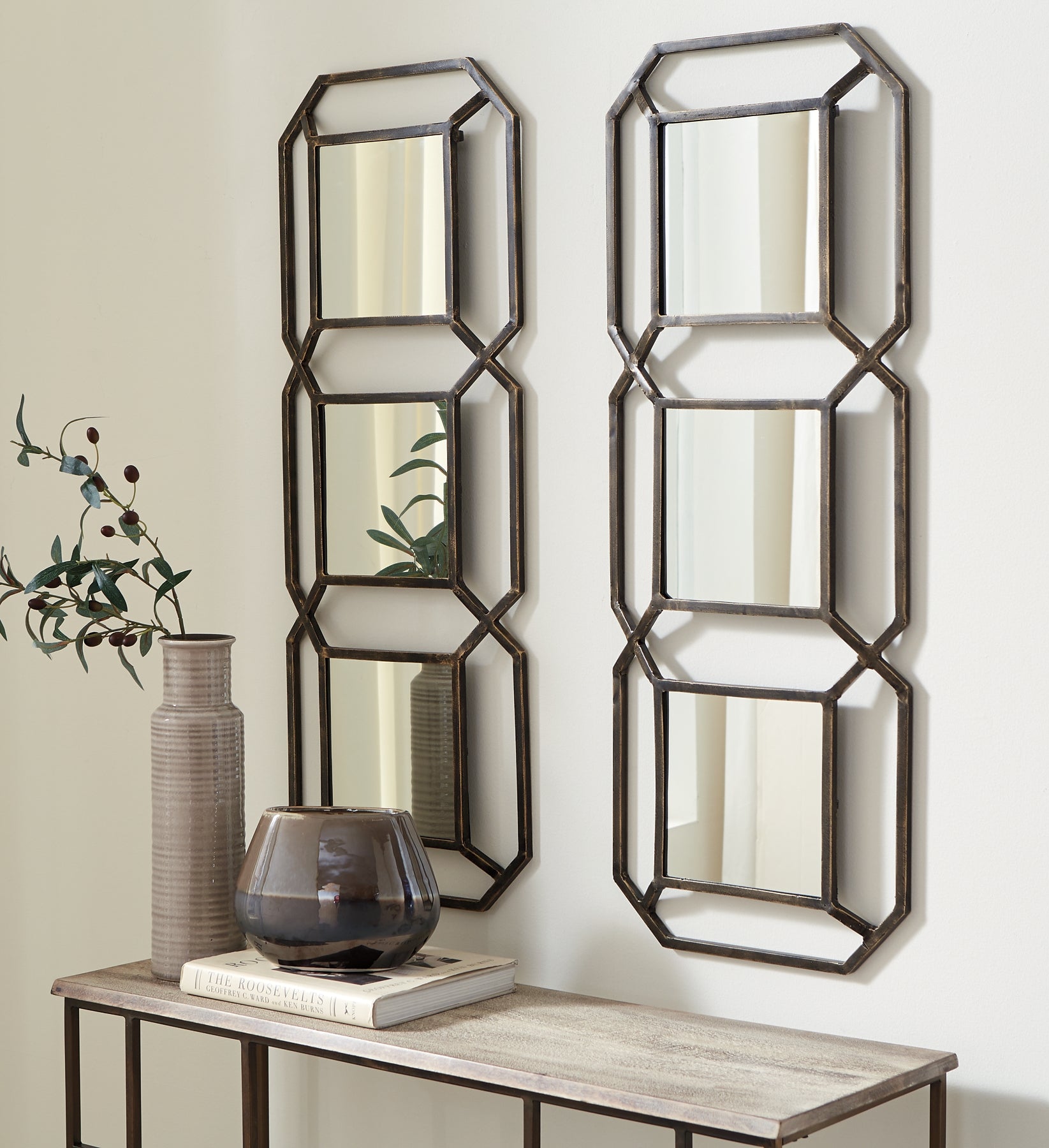 What a striking reflection of your fine sense of taste. Wowing with a stacked geometric design that looks equally at home whether placed vertically or horizontally, this accent mirror is sure to elevate a space with equal parts form and function.