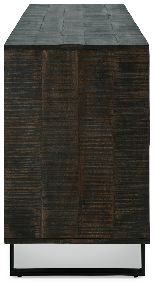 | Details | Made with solid mango wood, Grayish brown glazed finish, Metal hardware with black finish, Horizontal and vertical planked door fronts, Doors with soft-close hinges, 2 shelves, Cutouts for wire management, Assembly required | |