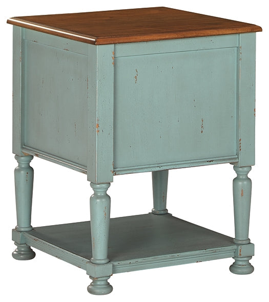 | Details | Made of wood, veneer and engineered wood, Antique teal and brown finishes, Lattice door front with inset clear glass, Metal door pull in pewter-tone finish, 1 door and 1 shelf, Assembly required | |