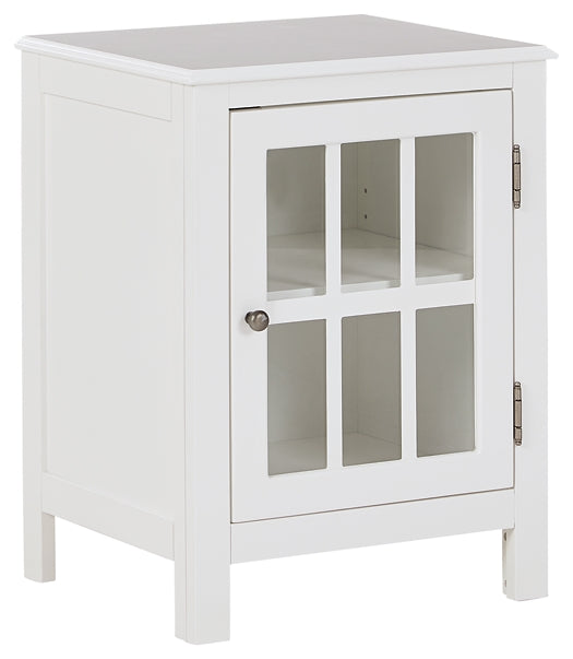 | Details | Made of solid and engineered wood in white finishes, Lattice door front with inset clear glass, Metal door pull in pewter finish, 1 doors and 1 shelf, Assembly required | |