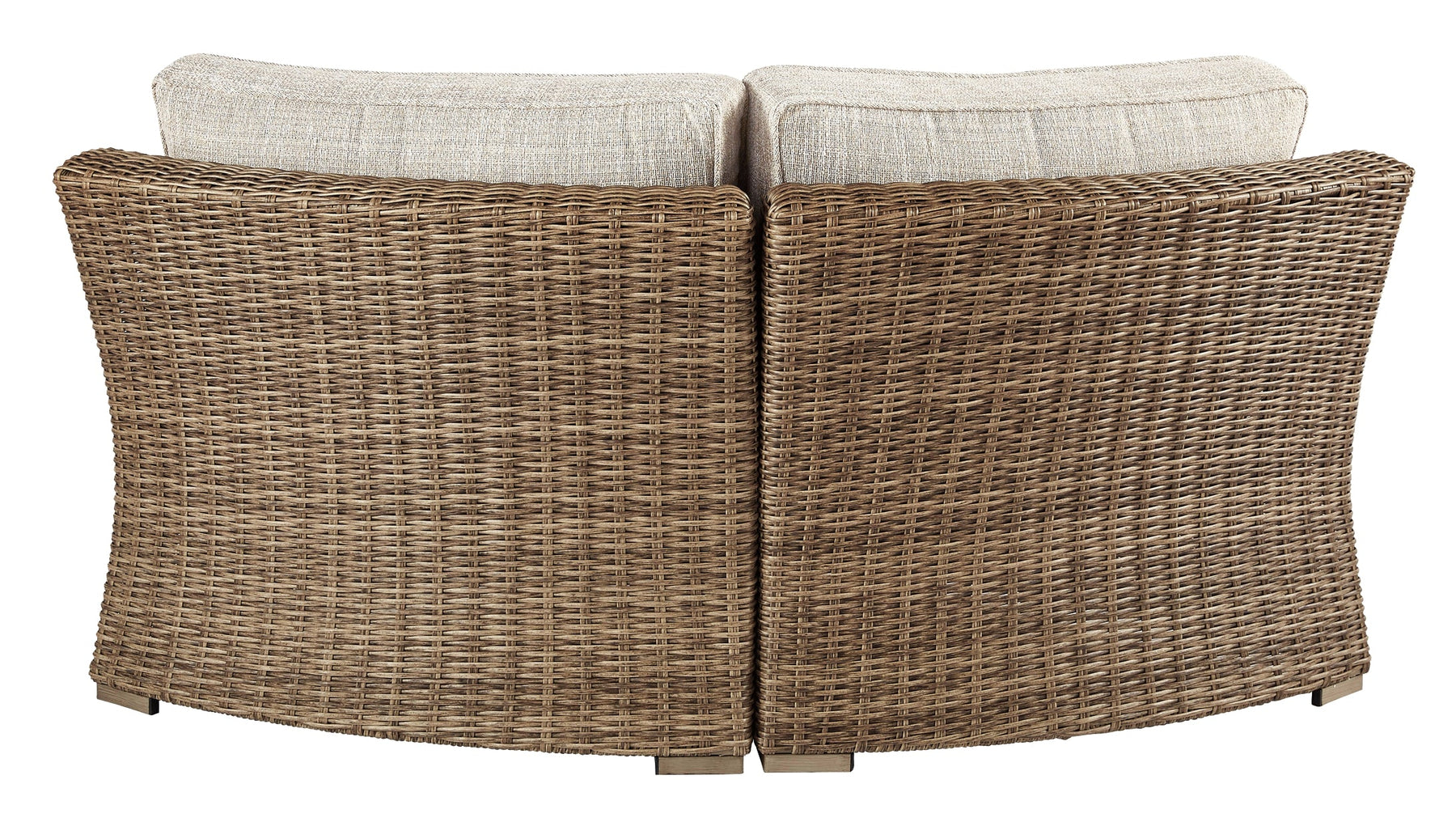 Sporting an easy-on-the-eyes look inspired by driftwood, this curved corner chair with cushion elevates the art of indoor-outdoor living. Beautiful and durable enough for indoor and outdoor use, this high-style/low-maintenance sectional chair entices with plush, removable cushions wrapped in Nuvella® fabric that’s a breeze to keep clean.