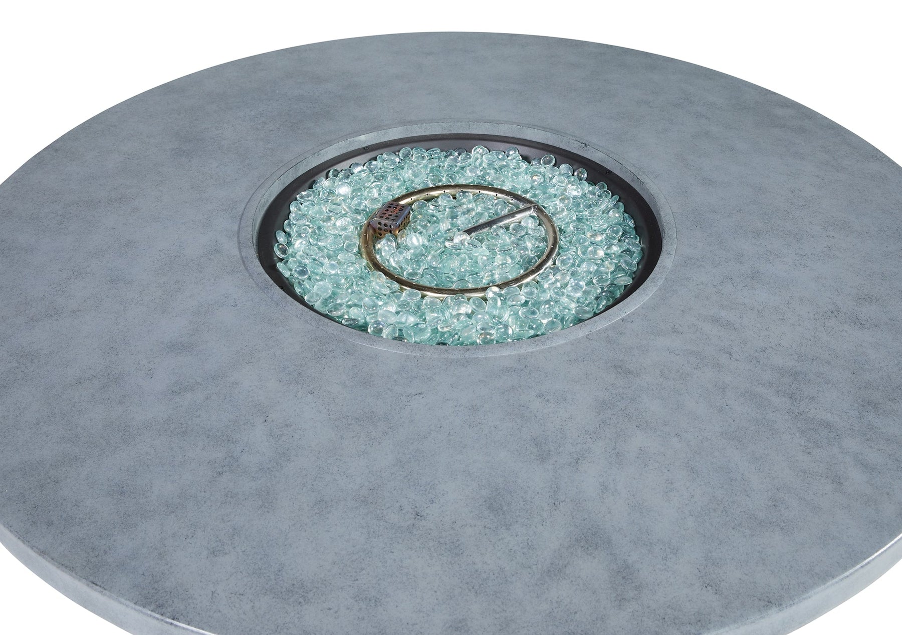 Sporting a trendy faux concrete top for a sense of earthy elegance, this fire pit table is sure to turn your backyard space into a hot place for entertaining. The way its flickering flame seems to float on a bed of clear glass beads is truly mesmerizing. Crafted of sturdy, rust-proof aluminum, this outdoor fire pit table is sure to weather the seasons beautifully.