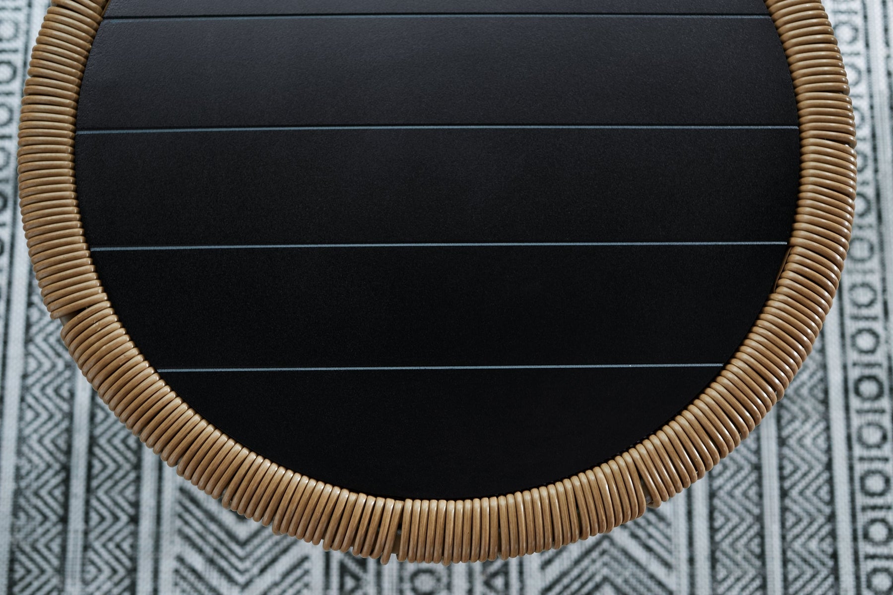 Treat yourself to trend-right outdoor design with this table and chair set. It elevates your patio, deck or poolside seating area with brown resin wicker over a durable powder coated steel frame. The included end table with an aluminum top keeps your essentials for everyday relaxation within reach.