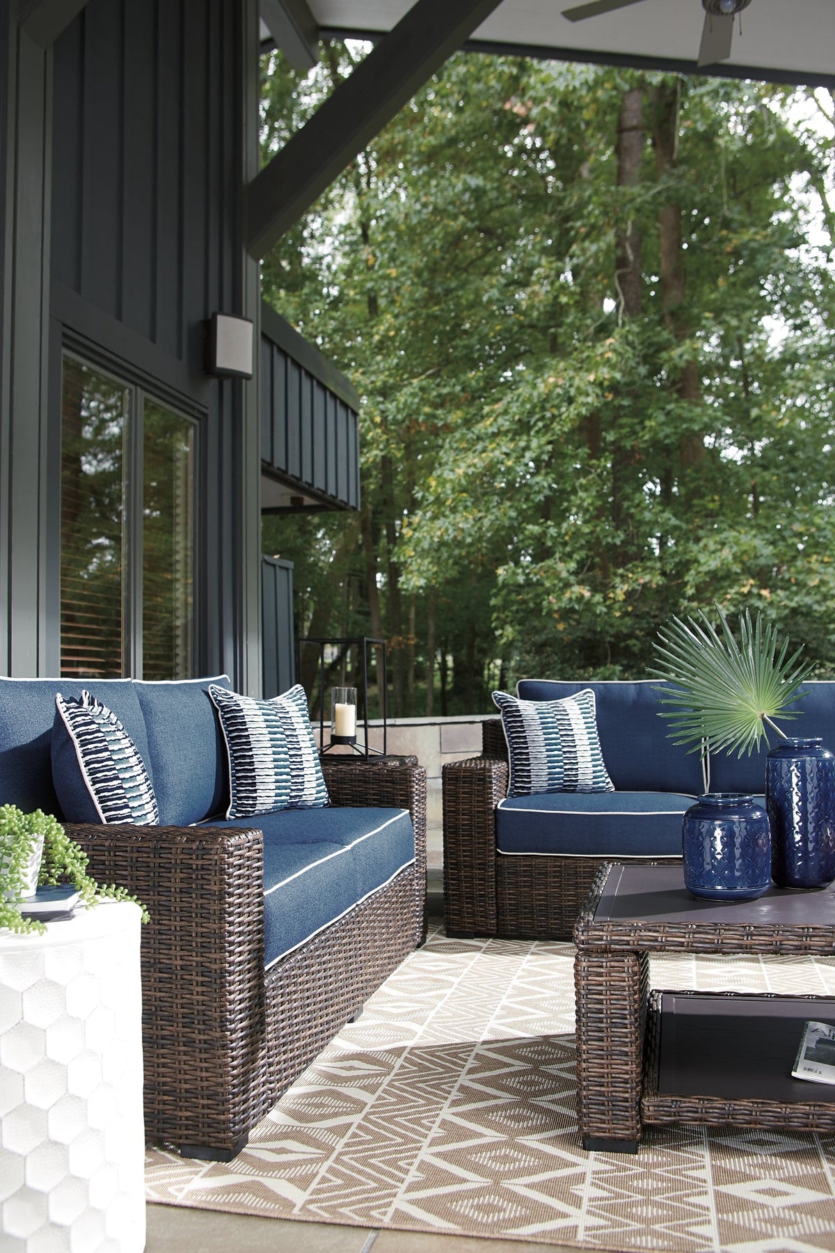 | Details | Includes 3 pieces: sofa and loveseat (with cushions) and coffee table, All-weather resin wicker handwoven over durable aluminum frame, Powder coated aluminum resists rusting and fading, Zippered cushions covered in high-performing Nuvella® fabric, All-weather foam cushion core wrapped in soft polyester, Imported fabric and fill, Clean fabric with mild soap and water, let air dry; for stubborn stains, use a solution of 1 cup bleach to 1 gallon water, Assembly required | |
