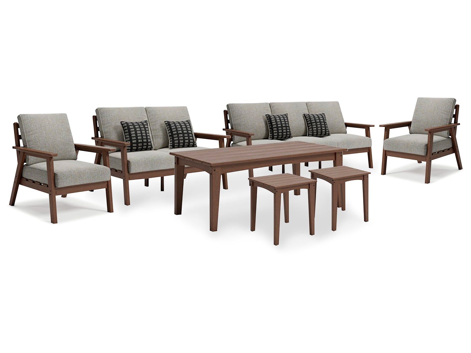 Emmeline Outdoor Sofa, Loveseat and 2 Lounge Chairs with Coffee Table and 2 End Tables