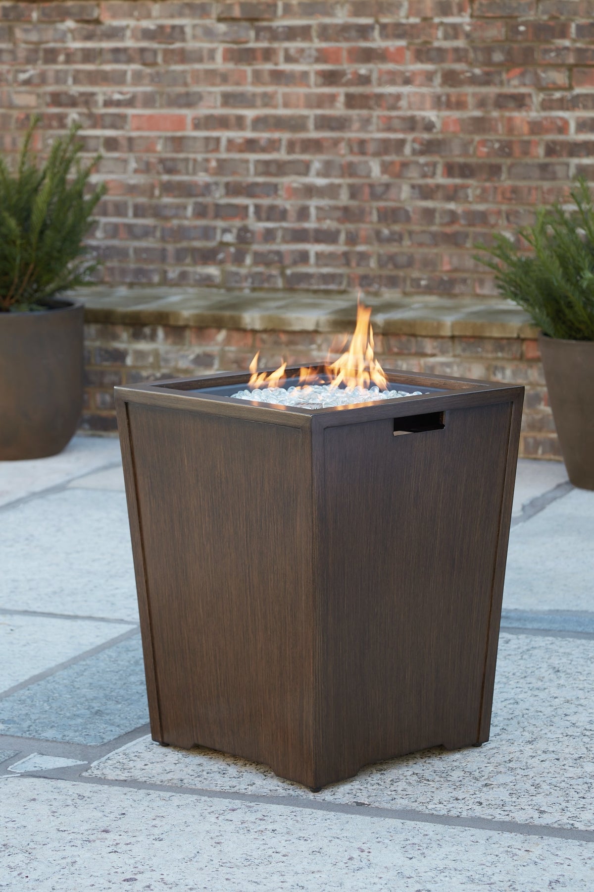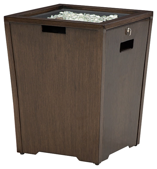 Sporting a hand-painted brown wood-look finish for a sense of earthy elegance, this fire pit table is sure to turn your backyard space into a hot spot for entertaining. The way its flickering flame seems to float on a bed of brown glass beads is truly mesmerizing. This outdoor fire pit, crafted with sturdy rust-proof aluminum and equipped with a burner cover and a polyester protective cover, will weather the seasons beautifully.