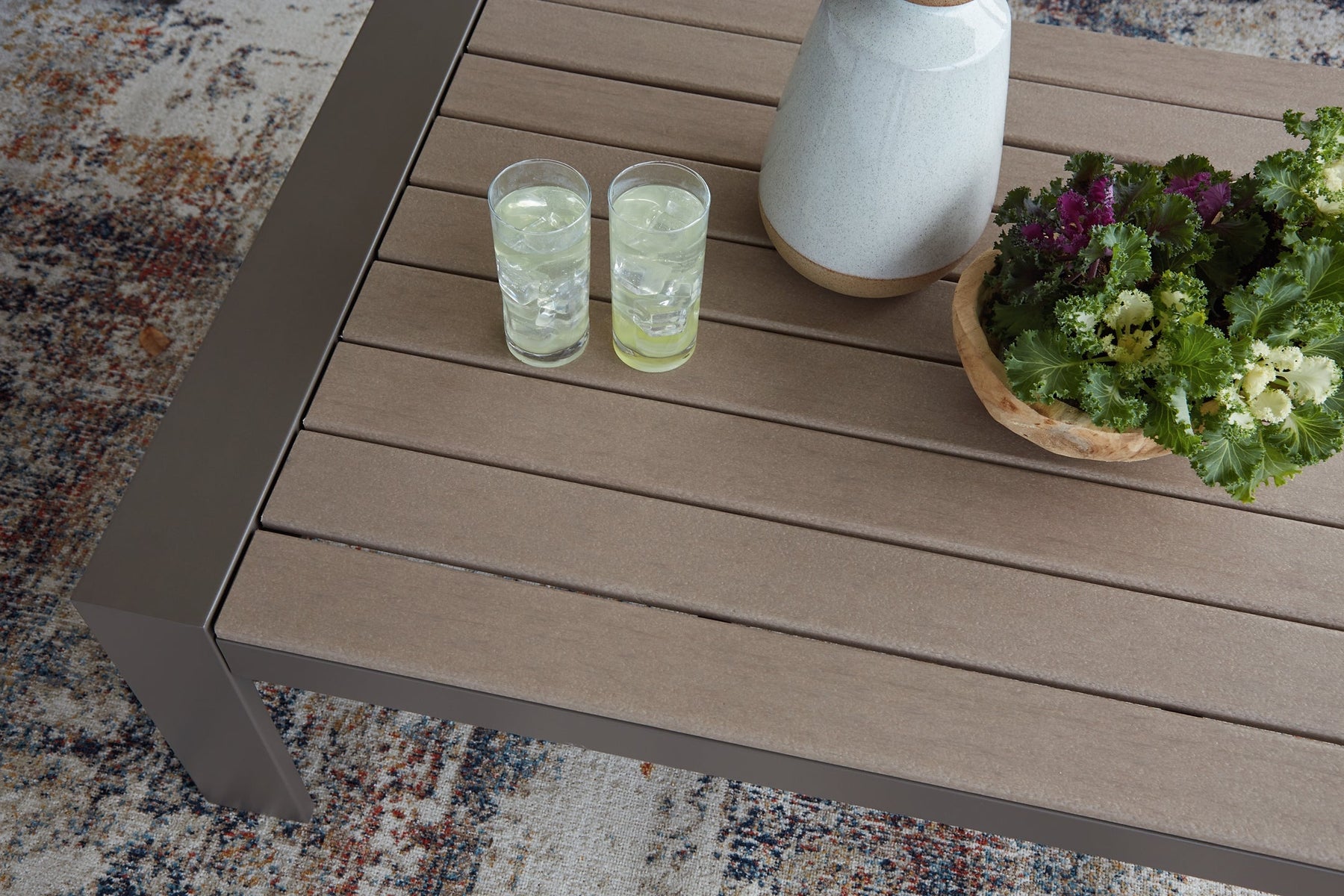 Natural neutrals are all the rage these days. Embrace the style trend with this outdoor coffee table. Crafted with a mix of aluminum and an HDPE material for exceptional durability and weather resistance, this table takes outdoor living to a whole new level.