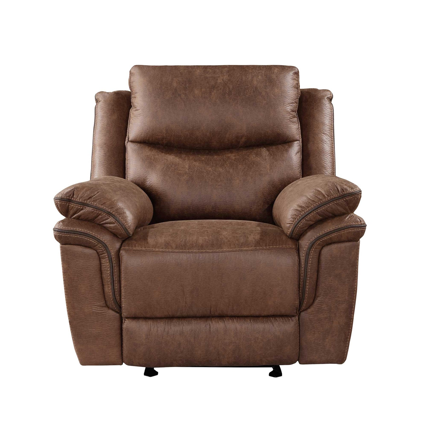 The Ryland Glider Recliner combines comfort and style in one inviting package. Upholstered in a rich brown 100% polyester fabric, this recliner offers durability and a warm aesthetic that complements any living space. The smooth glider mechanism provides effortless reclining motion, allowing you to find the perfect position for reading, watching TV, or simply unwinding after a long day. With coil cushions for exceptional support and a sturdy hardwood and plywood frame, the Ryland Glider Recliner delivers long-lasting comfort you can count on.