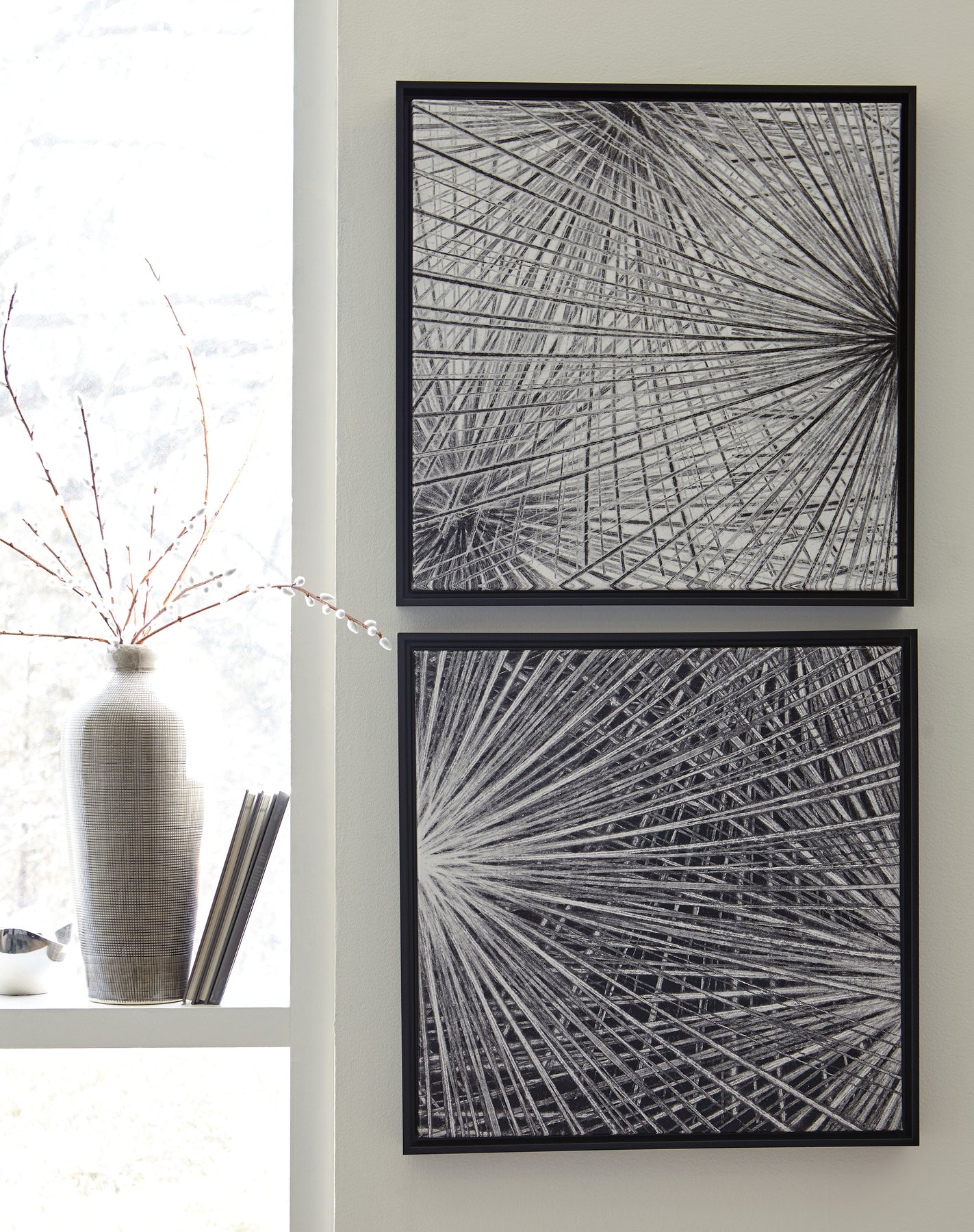 Why settle for a simple piece of modern art when the Dorinda 2-piece black and white wall art set makes such a striking pair? Its “reverse out” black-over-white, white-over-black treatment offers continuity with a sense of originality.