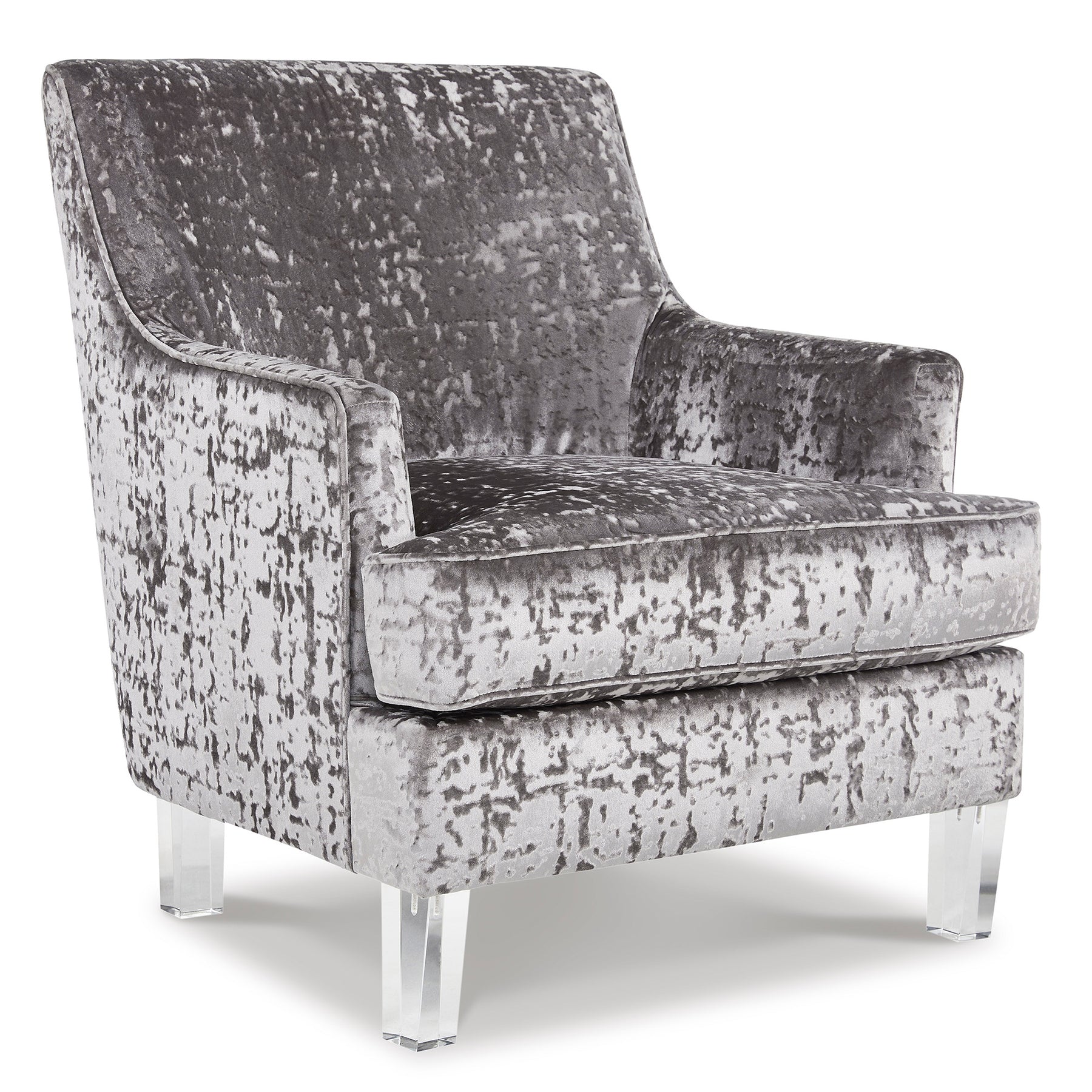 This accent chair with shelter arm styling merges contemporary and traditional styling in the most beautiful way. The combination of polyester crushed velvet upholstery and tapered clear acrylic legs makes for one cool contrast. Combining comfort and fashion-forward design for the modern enthusiast.