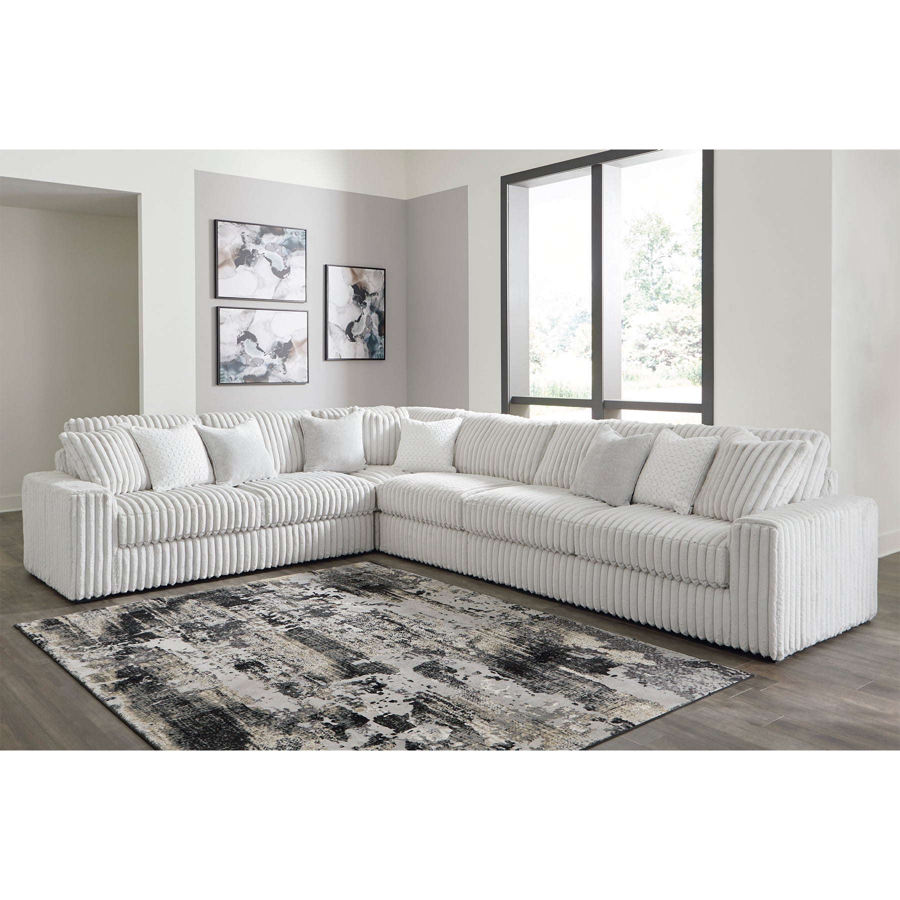 Contemporary 4-Piece Stupendous Sectional with high-resiliency foam cushions, offers long-lasting support and comfort