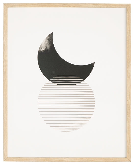 A beautiful balance of day and night. This wall art provides a sense of natural harmony to your decor while remaining modern in design. Its black and white interpretation of the sun and moon is a fresh, contemporary take on classic artistic motifs.