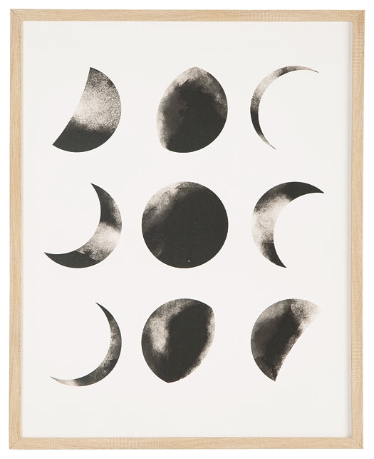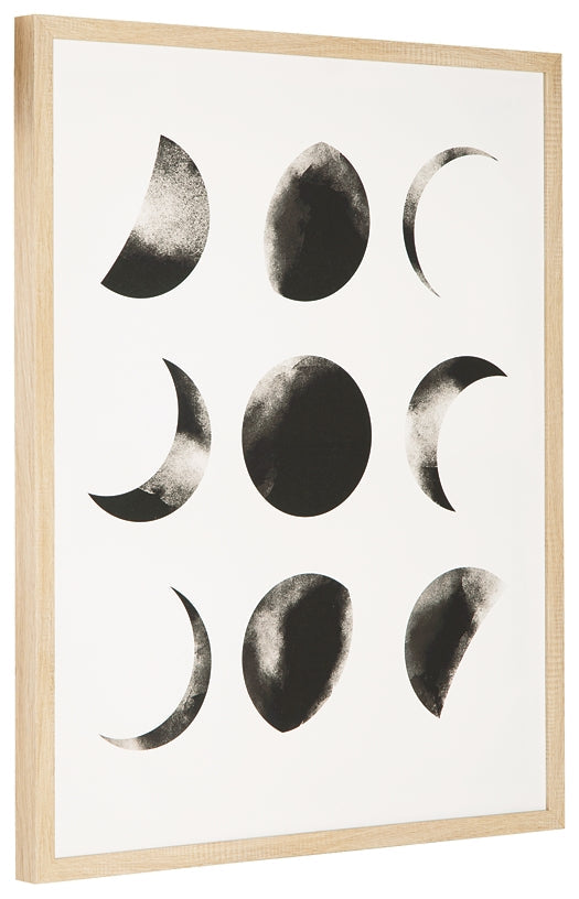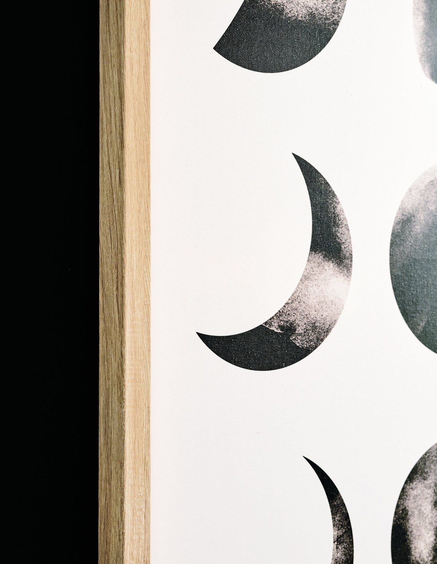 The celestial gets a chic twist in this wall art. Showcasing multiple phases of the moon, the modern piece has a dreamy sense of whimsy. Black and white hues keep the cosmic and contemporary piece refined in design.